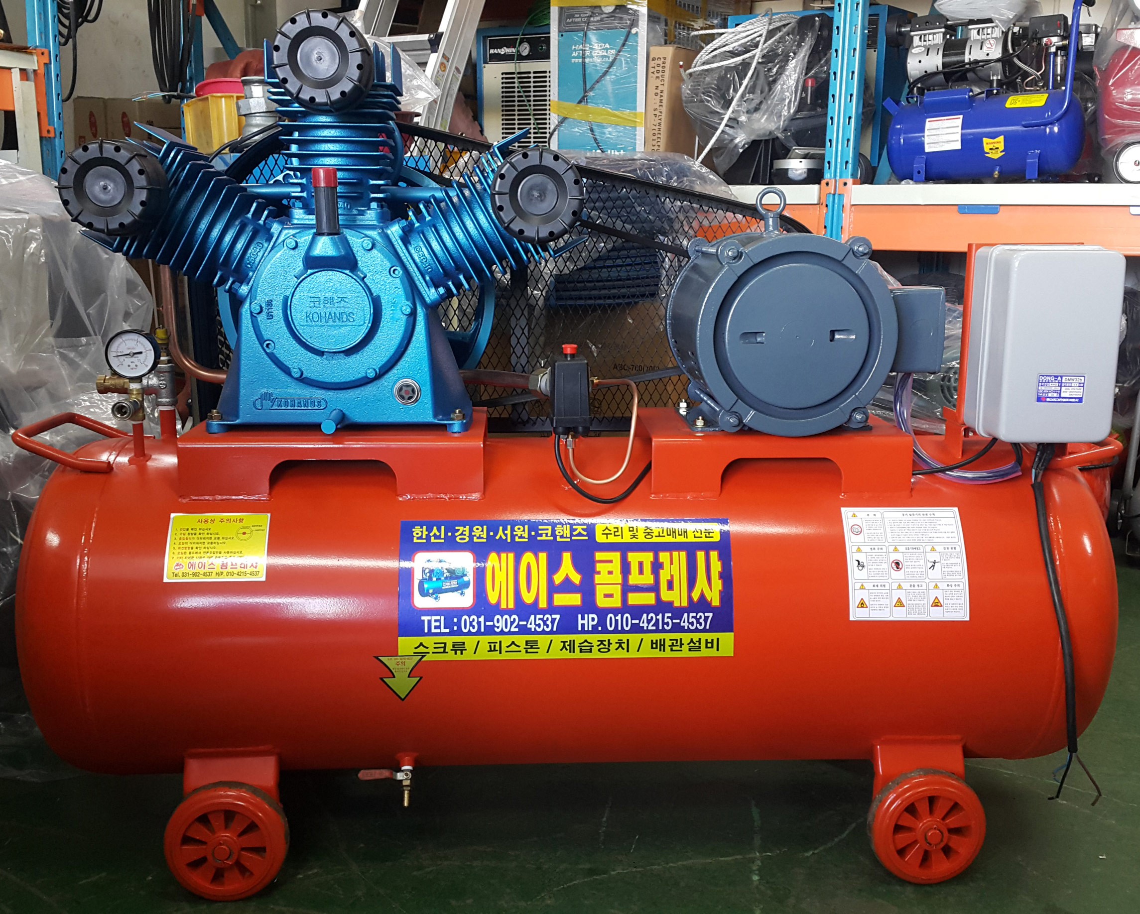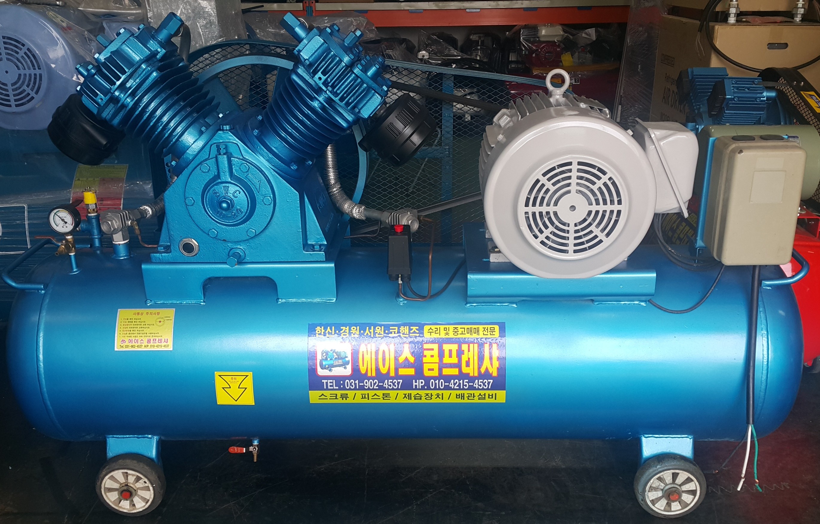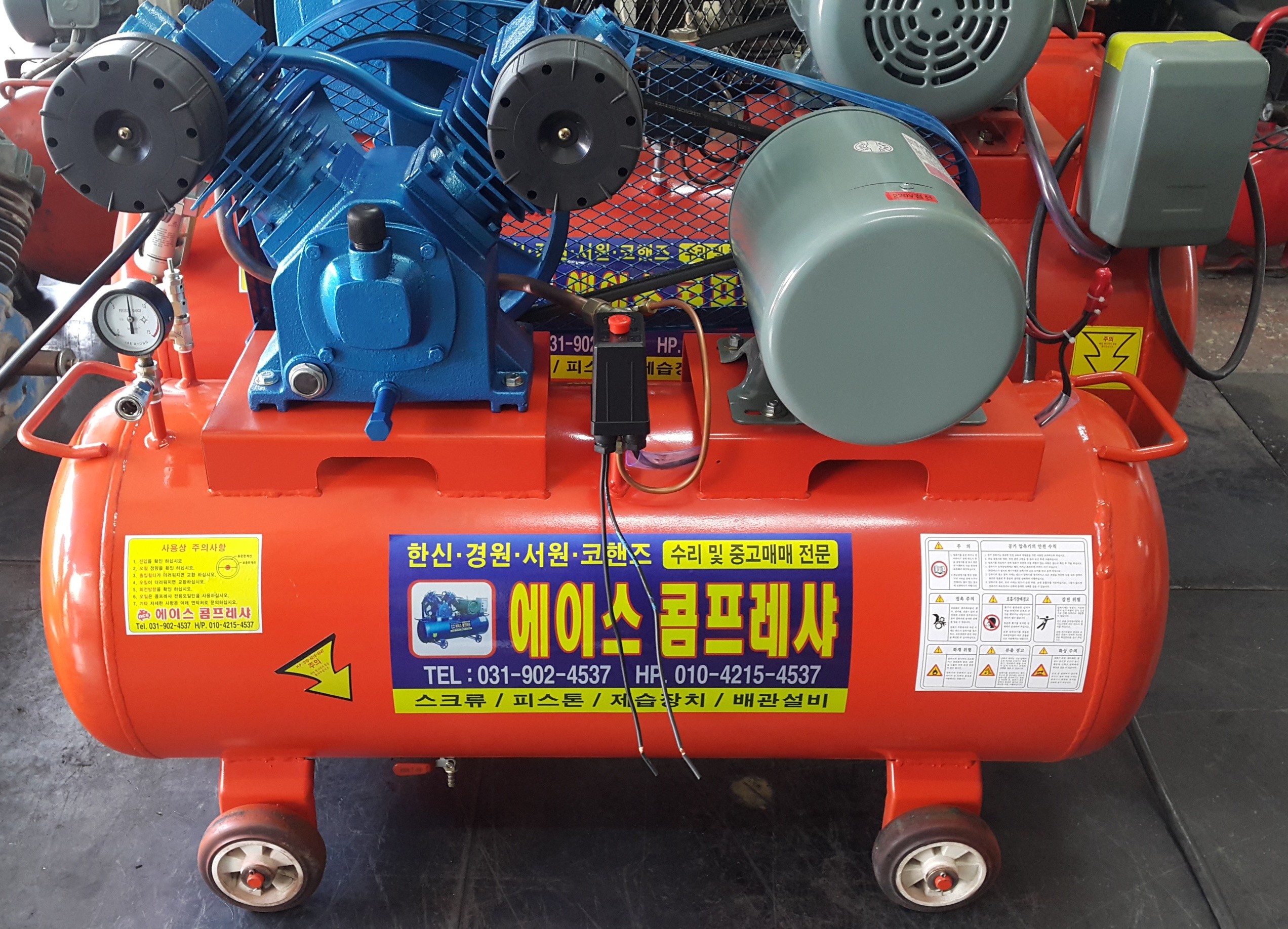 중고콤프레샤 산업용 3마력입니다. 모터는 새제품이고 사용전기는 일반 220V, 탱크역시 새제품이고 용량은 120리터입니다. 콤프레샤 헤드만 올 수리 올보링한 후 부식방지를 위한 도색까…